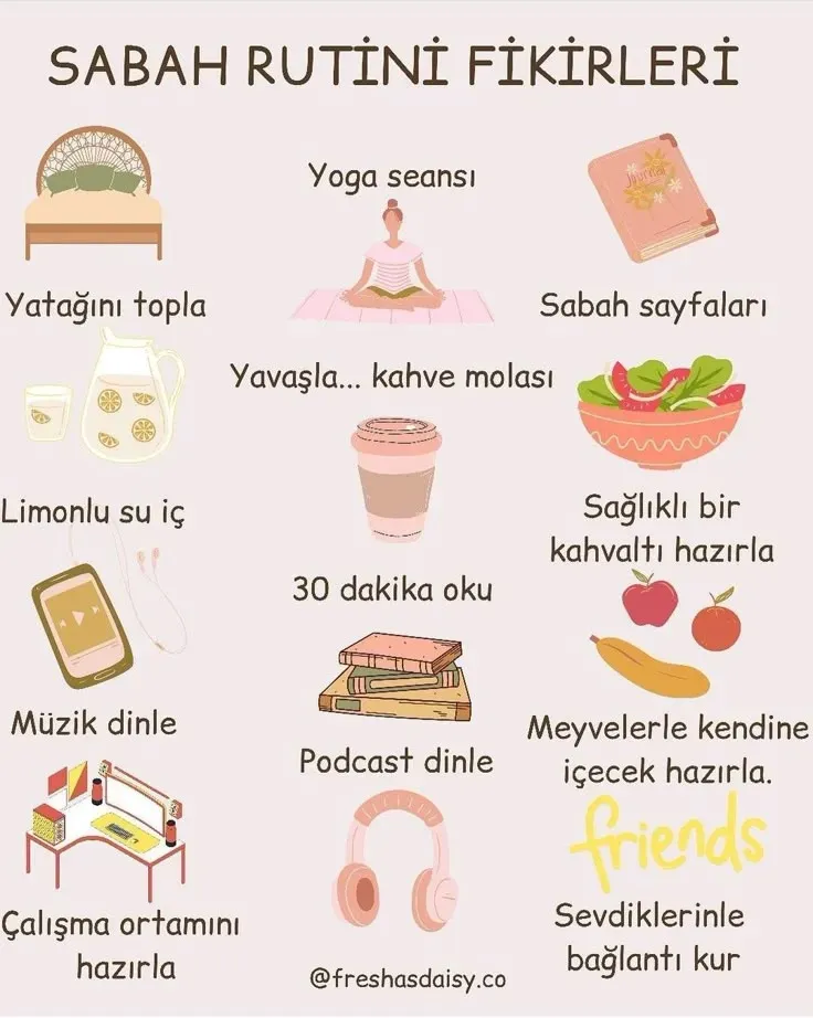 Sağlıklı bir gün için sabah rutini, günün ilk anlarında kendinizi uyandıran ve gün boyu odaklanma, enerji ile duygusal denge için temel bir yol haritası sunar; bu alışkanlık, uyku ritimlerinden başlayıp hidrasyon, hareket ve kısa odaklanma uygulamalarıyla birleştiğinde sizi daha kontrollü ve verimli bir başlangıca davet eder ve sabahları hissettiğiniz tazelik ile gün içindeki davranışlarınız arasındaki uyumu güçlendirir. İyi bir başlangıç için sabah rutini, yeterli uyku kalitesiyle başlar ve sabahın erken saatlerinde yapılan hafif egzersizlerle kan dolaşımını hızlandırır, ardından sabah suyu ile metabolizmayı aktive eder; bu adımlar zihinsel netliği güçlendirir, sabah motivasyonunu artırır ve karar verme süreçlerini daha akıcı hale getirir. Sabah rutini ile enerjik başlangıç hedeflerine ulaşmak için protein, lif ve sağlıklı yağlardan oluşan dengeli bir kahvaltı planı elzemdir; bu kombinasyonlar sabah sonrası enerji dalgalanmalarını azaltır, uzun süreli tokluk sağlar ve gün boyu performansı destekler. Enerji için sabah ritüelleri, kısa mindful pratikleri, meditasyon ya da nefes egzersizlerini içerebilir; bu basit adımlar zihinsel odaklanmayı güçlendirir, stresi yönetmeyi kolaylaştırır ve günün geri kalanında motivasyonu yükseltir; ritüellerin sürekliliği, yeni davranışların otomatikleşmesini sağlayarak sabahları daha doğal bir alışkanlığa dönüştürür. Aynı zamanda kahvaltı ve enerji arasındaki ilişkiyi destekleyen besleyici seçenekler—lifli karbonhidratlar, dengeli protein kaynakları ve sağlıklı yağlar—günün erken saatlerinden itibaren enerji akışını düzenler ve günlük kararlarınızda daha istikrarlı bir performans sunar; bu yüzden sağlıklı yaşam için sabah ritüelleri kavramı, bireyin kendine özen göstermesi ve kendi biyolojik saatine saygı duyması gerektiğini hatırlatır.
